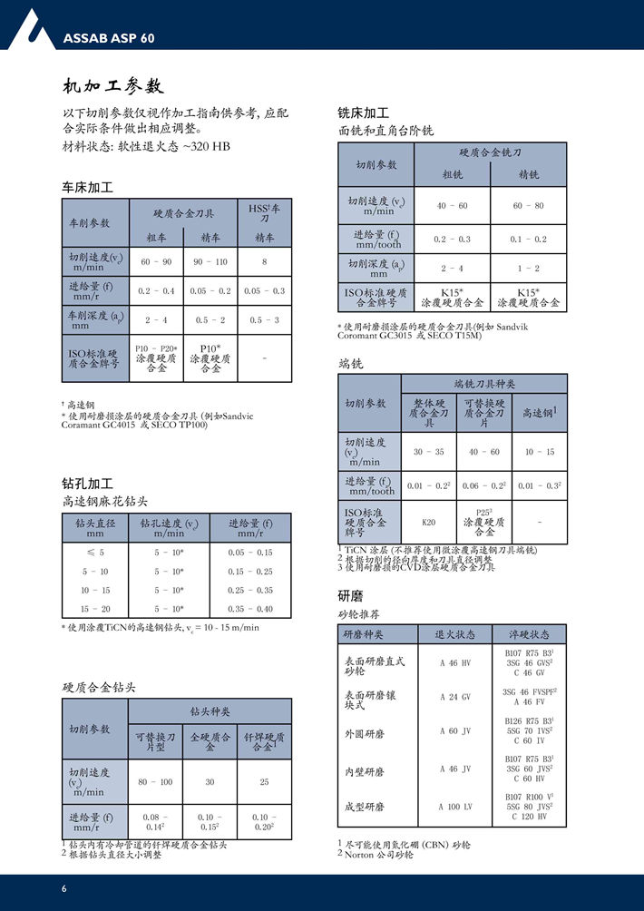 瑞典進口ASP60粉末高速鋼:用于刀具和冷加工的粉末高速鋼,極高的耐磨性和高溫時硬度。...