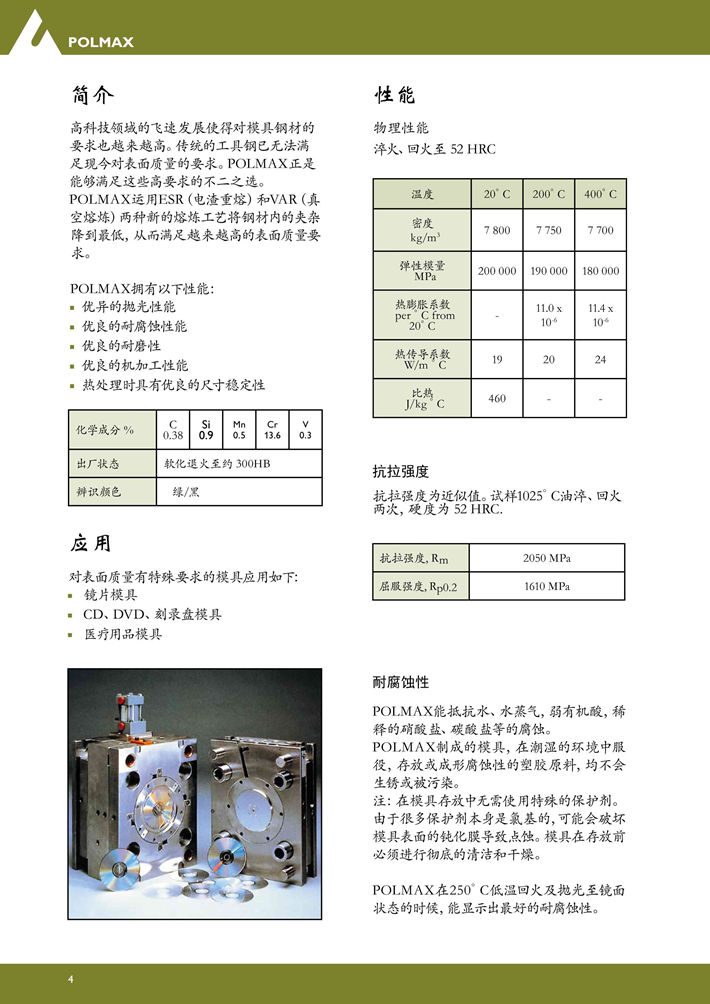 瑞典進(jìn)口POLMAX塑膠模具鋼:出色的拋光性能,優(yōu)良的抗腐蝕性和耐磨性,優(yōu)良的機(jī)加工性能...